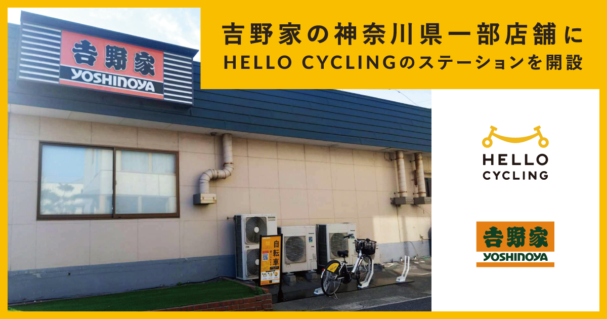 吉野家の神奈川県一部店舗にシェアサイクル「HELLO CYCLING」のステーションを開設~店舗利用者および地域住民の移動時の利便性向上に貢献~