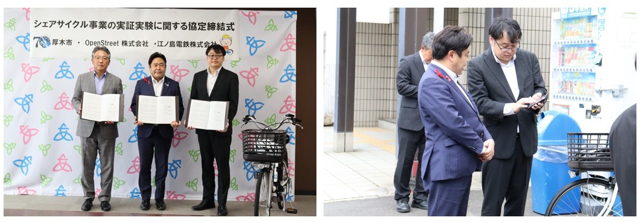 OpenStreet株式会社(本社:東京都港区、代表取締役社長CEO:工藤 智彰、以下「OpenStreet」)は、江ノ島電鉄株式会社(本社:神奈川県藤沢市、取締役社長:黒田 聡、以下「江ノ島電鉄」)、神奈川県厚木市(市長:山口 貴裕)と『厚木市のシェアサイクル事業の実証実験に関する協定(以下、「本協定」)』を締結し、国内最大級のシェアサイクルプラットフォーム「HELLO CYCLING」を活用したシェアサイクル事業の実証実験を、2025年10月6日から厚木市内で開始したことをお知らせします。