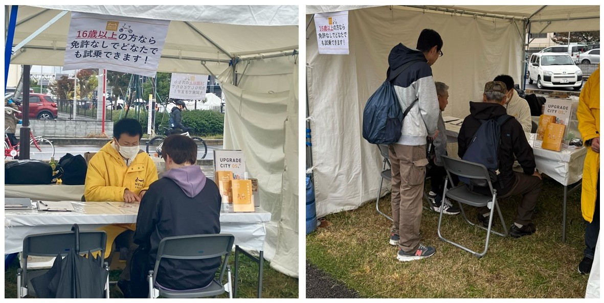 OpenStreetは9日(日)にHELLO CYCLINGブースを設置し、さいたま新都心バスターミナル付近で、特定小型原動機付自転車に適応した「電動サイクル」の交通ルールの説明および試乗会を実施しました。試乗会ブースにお越しいただいた皆さまには、冒頭で資料を用いながら電動サイクルの交通ルールを説明させていただき、試乗を前に自転車や原動機付自転車とは異なる交通ルールをご理解いただきました。当日はあいにくの天気となりましたが、多くの方に試乗をしていただき、「初めて乗ってみましたが、思ったよりスピードが出て乗り心地も良かった」などの感想をいただきました。