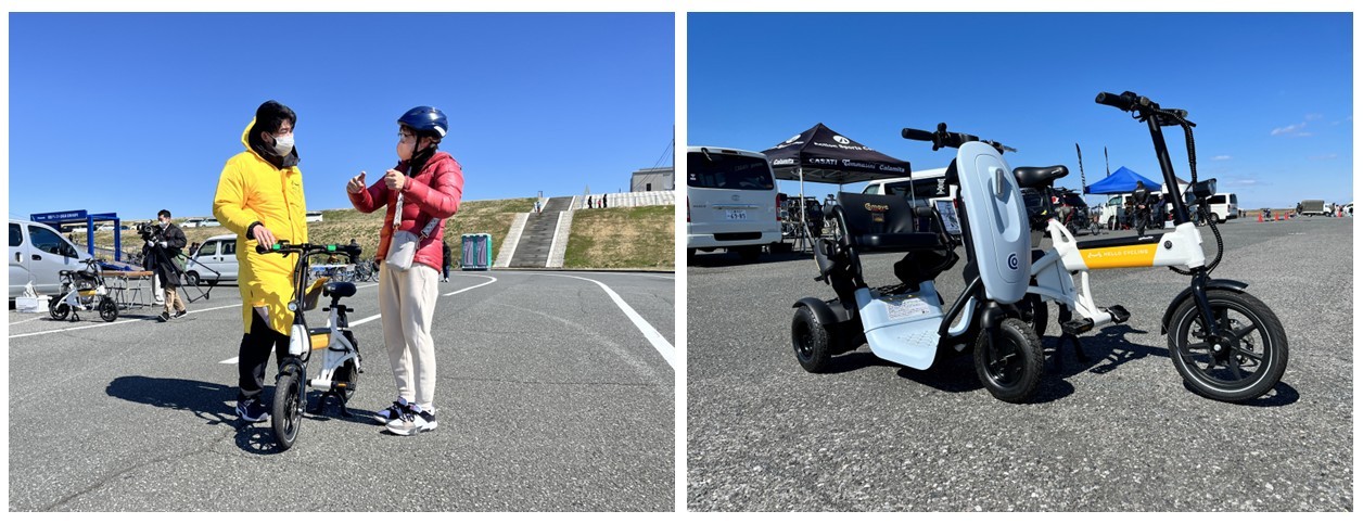 OpenStreetは特定小型原動機付自転車「電動サイクル」と、移動用小型車「Comove」の試乗会を実施しました。来場者は受付後、スタッフによる電動サイクルの交通ルールの説明を受けた後に、試乗を行いました。