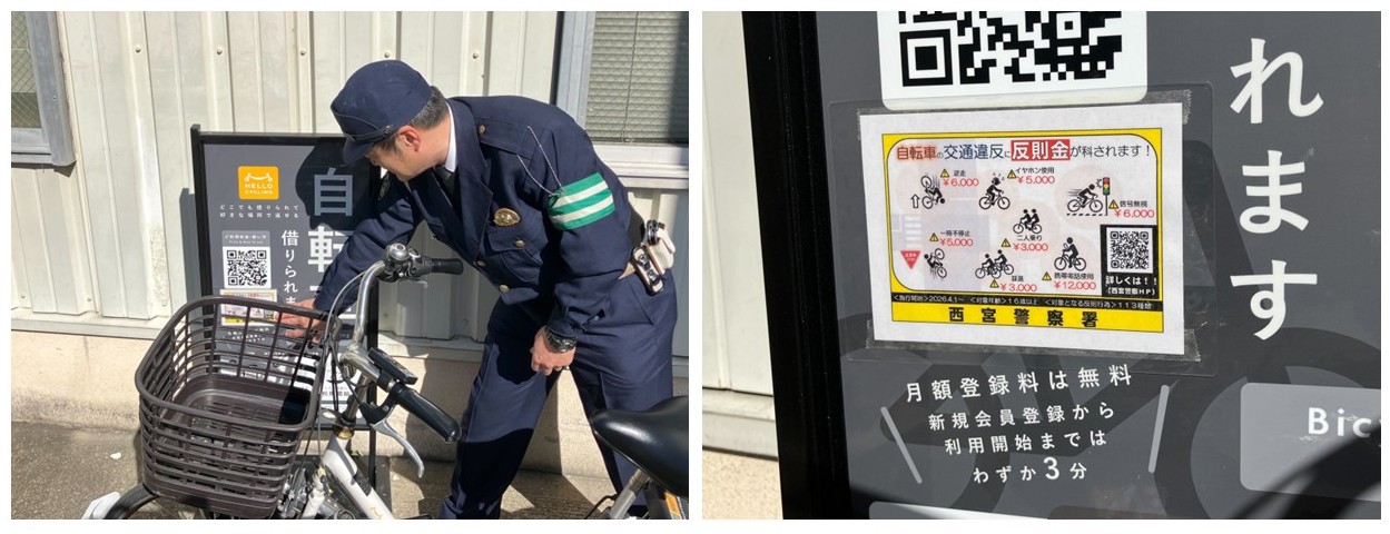 シェアサイクルサービスHELLO CYCLINGを展開するOpenStreet株式会社(本社:東京都港区、代表取締役社長CEO:工藤 智彰、以下「OpenStreet」)は、兵庫県西宮警察署と連携し、2026年4月から自転車の交通違反に導入される交通反則通告制度(青切符)に関する周知活動を実施しました。