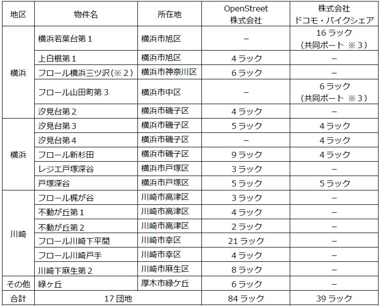 神奈川県住宅供給公社(所在地:横浜市中区、以下「公社」)、OpenStreet株式会社(所在地:東京都港区)及び株式会社ドコモ・バイクシェア(所在地:東京都港区)は、この度、公社が所有する団地において、シェアサイクルポート※1(以下、「ポート」)の設置を拡大し、2026年4月から順次運用を開始いたします。