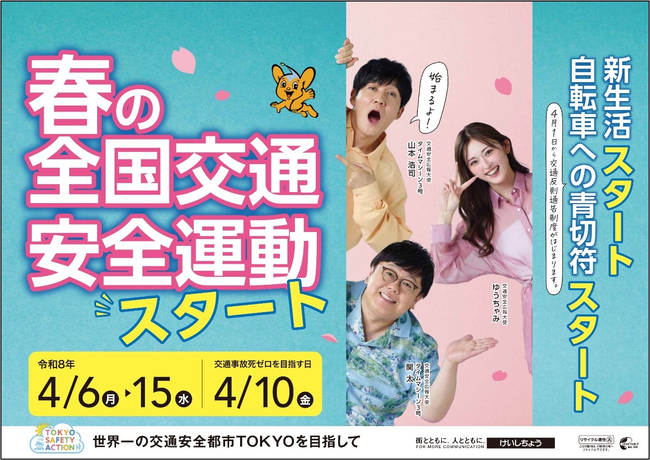 こんにちは、警視庁交通部です。春の新生活を迎えられた皆さんに大切なお知らせです!