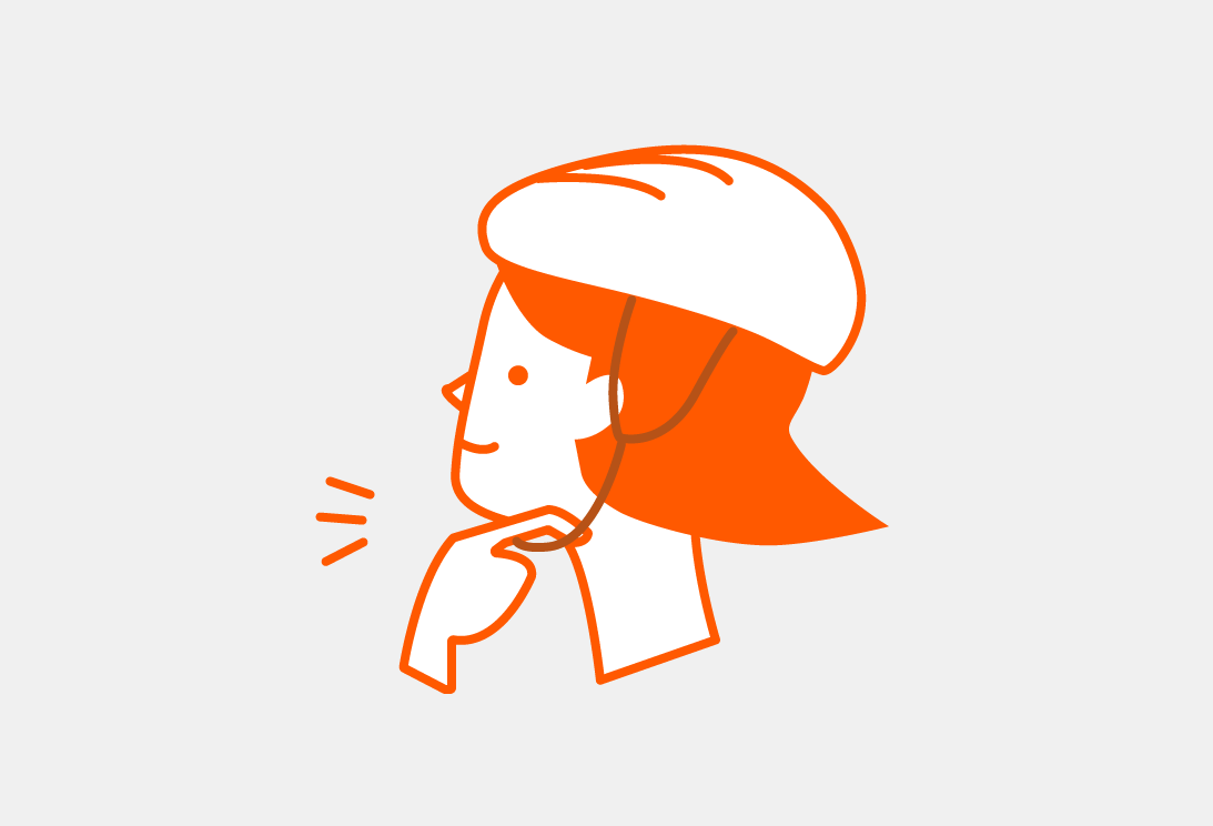 ヘルメットが外れないよう、顎紐を指1~2本が入る程度に締めましょう。